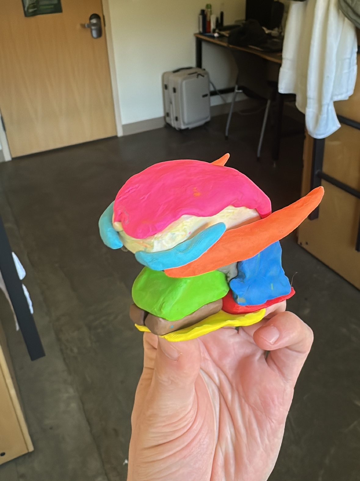 Jeff Mielke taught a very fun class entitled Tongue Movements and Phonology, which aimed at introducing anatomical descriptions of tongue movements, and their measurements with ultrasound imaging, to the students of the class. (You can see in the photo on the right my attempt at making a model tongue out of clay. It's a little bit wrong but not too much. The palatoglossus is in the complete wrong spot.) Other classes I particularly enjoyed were Zenzi Griffin's Eye Tracking in Psycholinguistic Research class, which provided an overview of eye-tracking and its various applications in linguistic research, and Fermín Moscoso del Prado Martín's Information Theory Tools for Language Research. I took plenty of others but the ones just mentioned were the highlights. There were also some excellent co-located conferences. I attended the Usage-based Approaches to Phonology Conference, and ABSPECK: Abstract and Item Specific Knowledge Across Domains and Frameworks. No shortage of linguistics there!